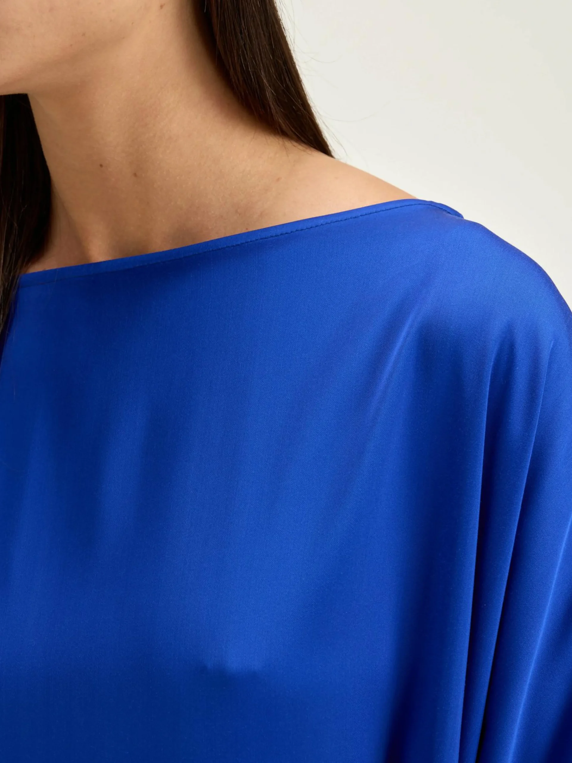 Oversizede, minimalistische lazuurblauwe jurk van viscose.