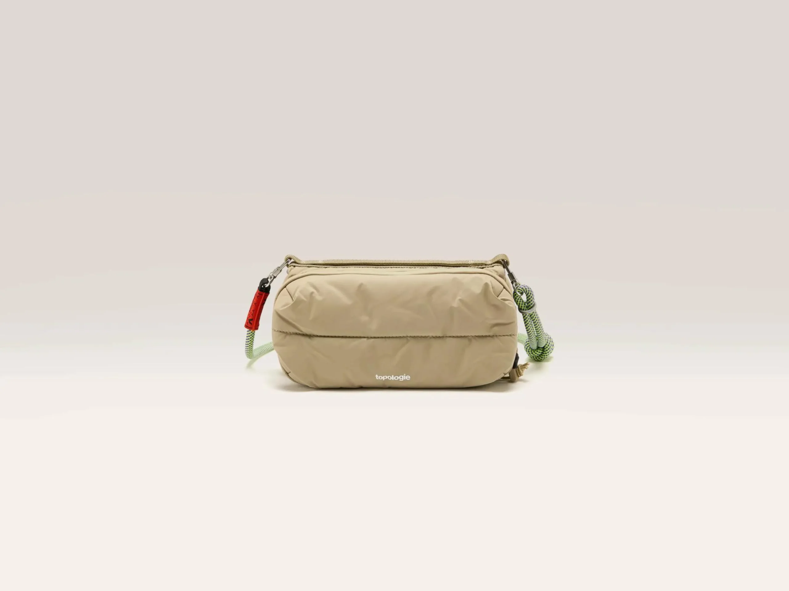 The Topologie Bottle Sacoch in black puffy nylon is a versatile daily sling bag with enhanced storage. Each element is sold separately, allowing you to mix and match bags, phone cases, and straps.