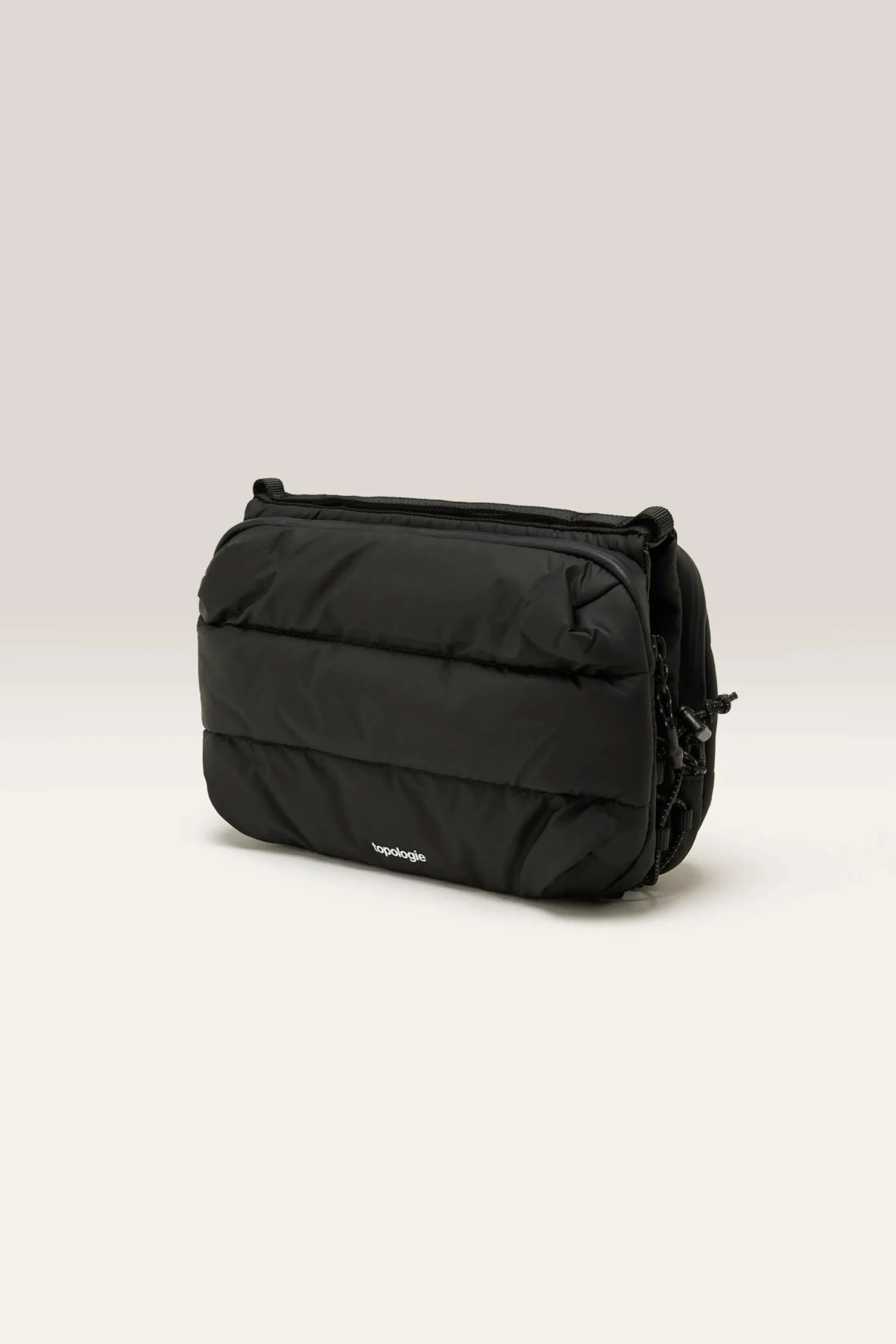 The Topologie Bottle Sacoch in black puffy nylon is a versatile daily sling bag with enhanced storage. Each element is sold separately, allowing you to mix and match bags, phone cases, and straps.