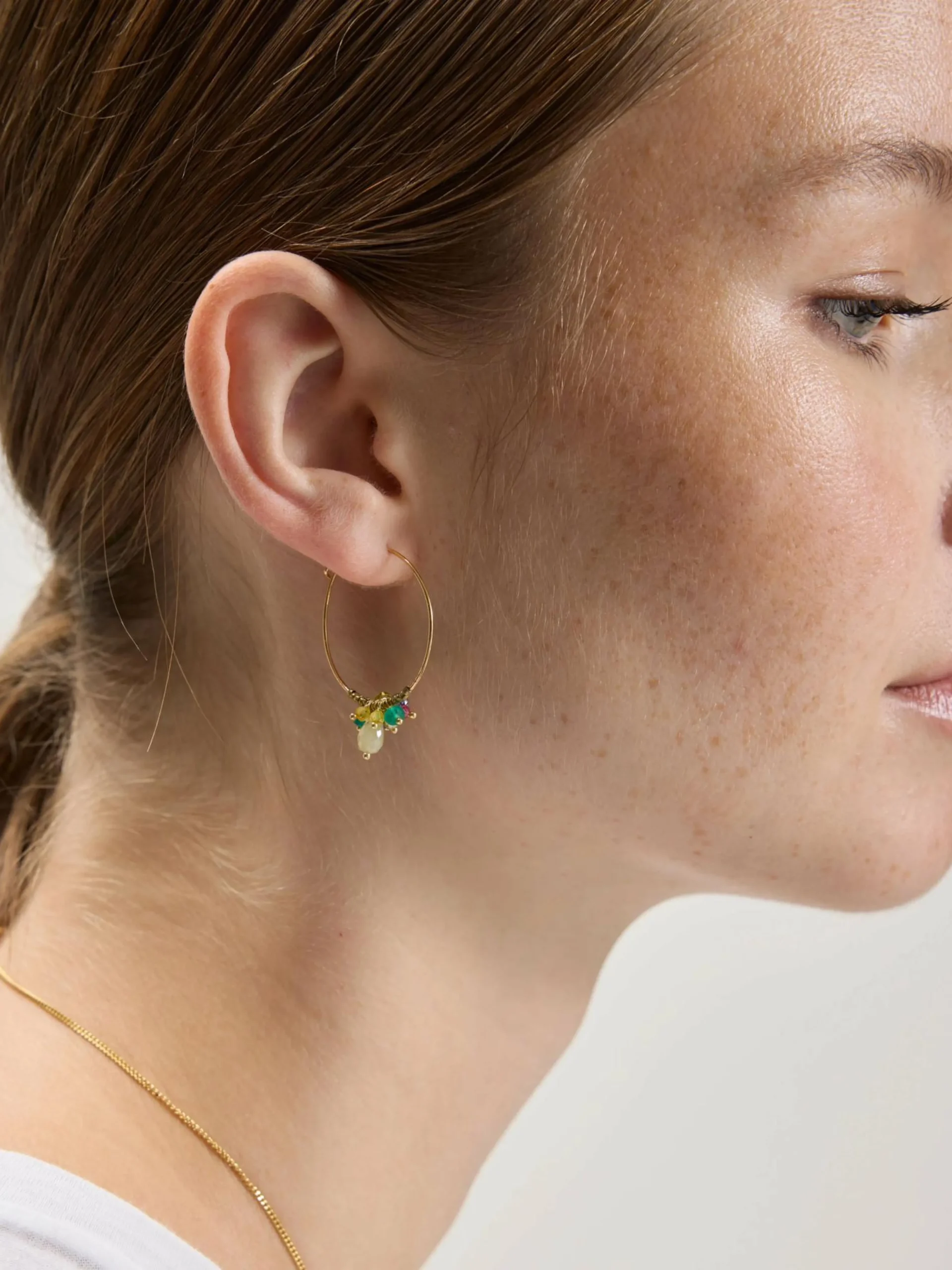 De Untitledition Bocciolo Oorbellen zijn een charmante verzameling van edelstenen en handgemaakte messing kralen op een gouden vermeil ring.
