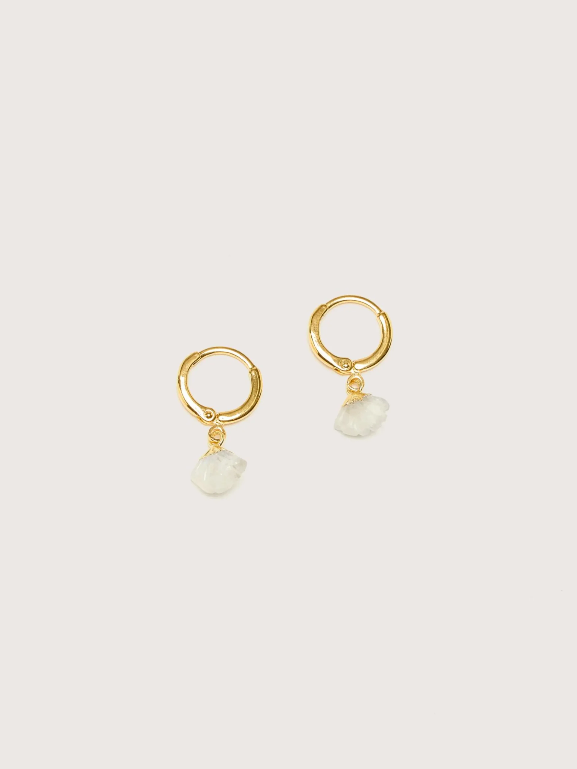 The Vadi Jewels Daya Hoop earrings are gold-plated small hoops with shell-shaped mother of pearl charms.