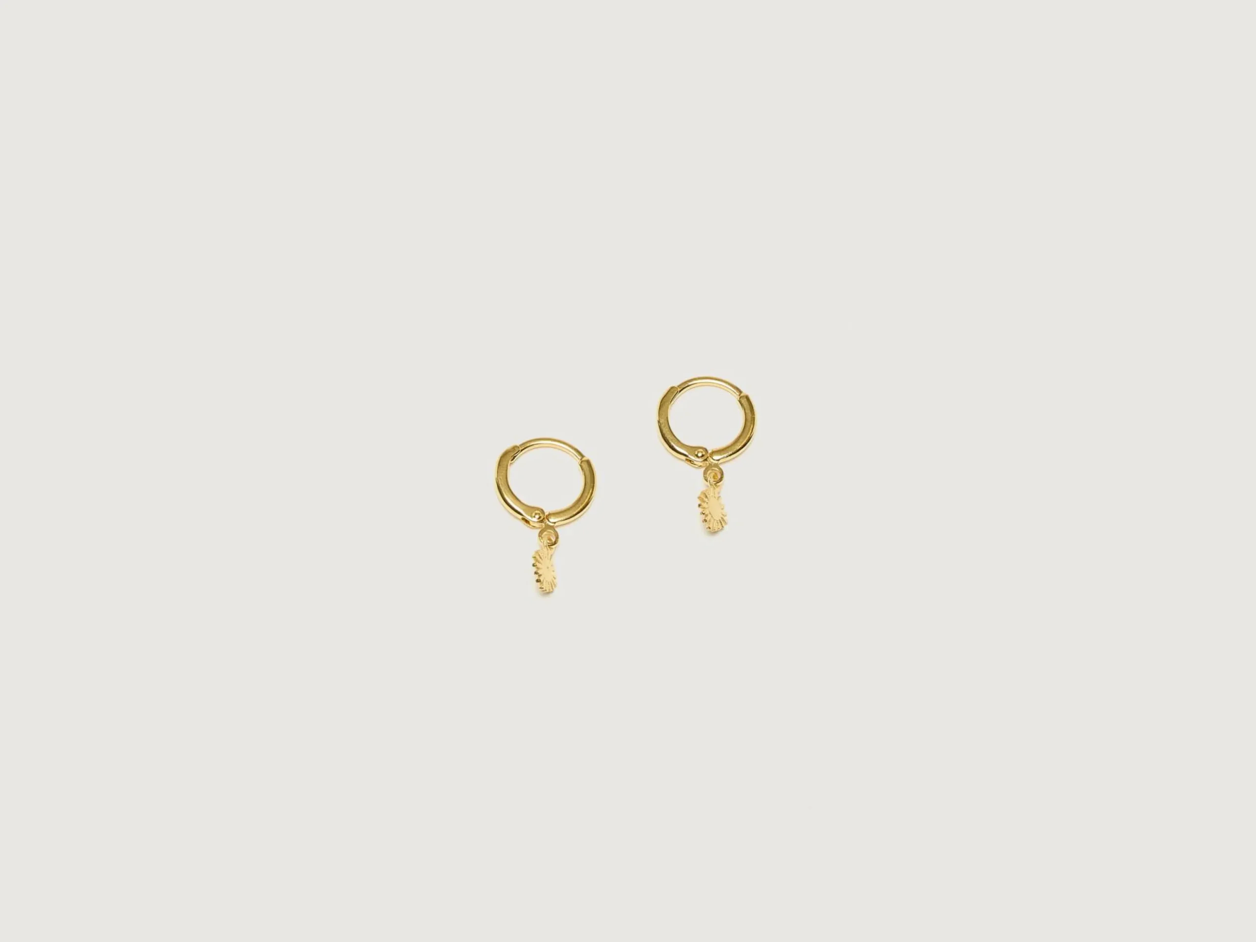 The Vadi Jewels Soleil Hoop earrings are gold-plated small hoops with sun charm pendants.