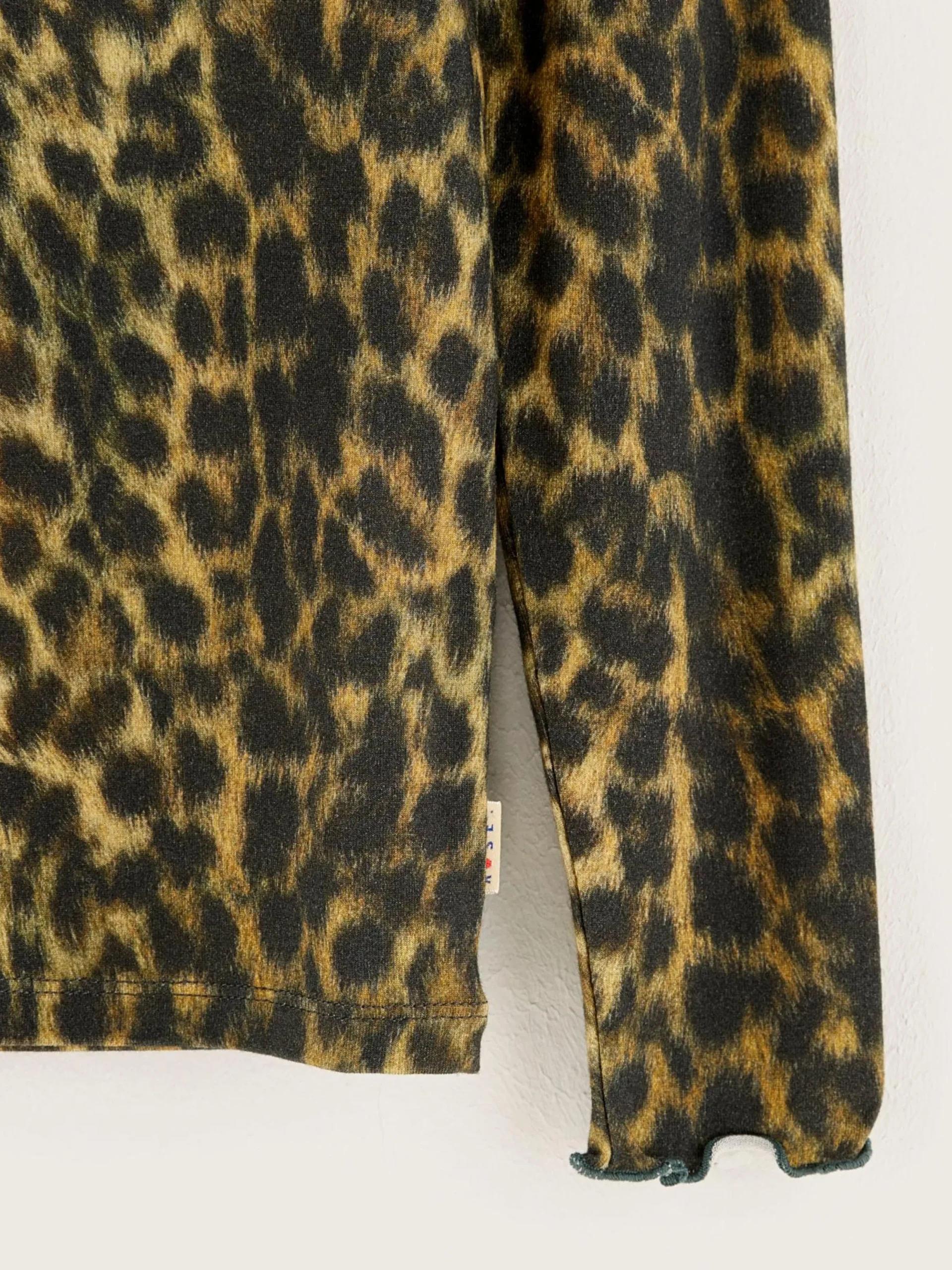 Aansluitend T-shirt met lange mouwen, rolkraag en luipaardprint.