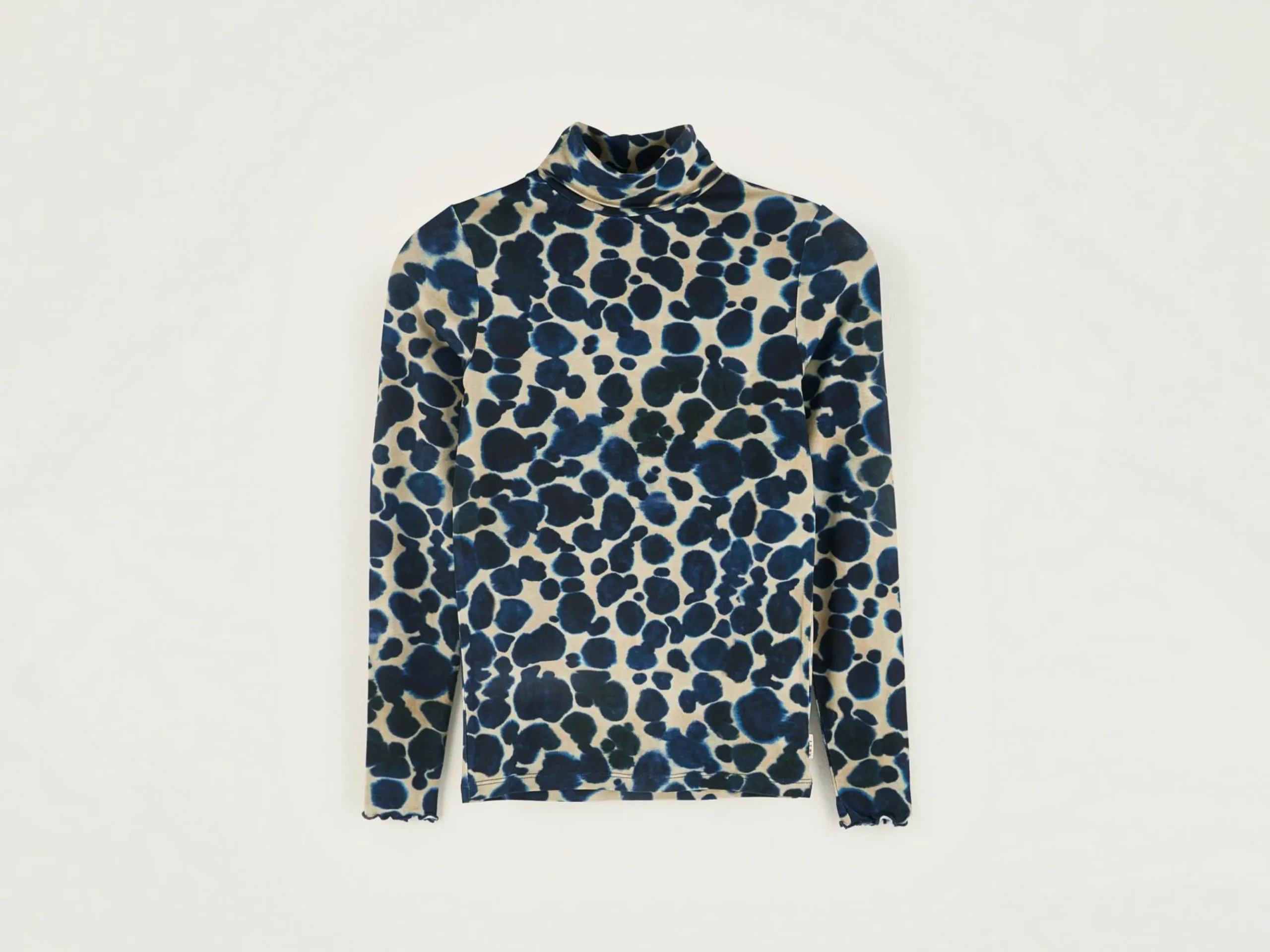 Aansluitend T-shirt met lange mouwen, rolkraag en inktvlekprint.