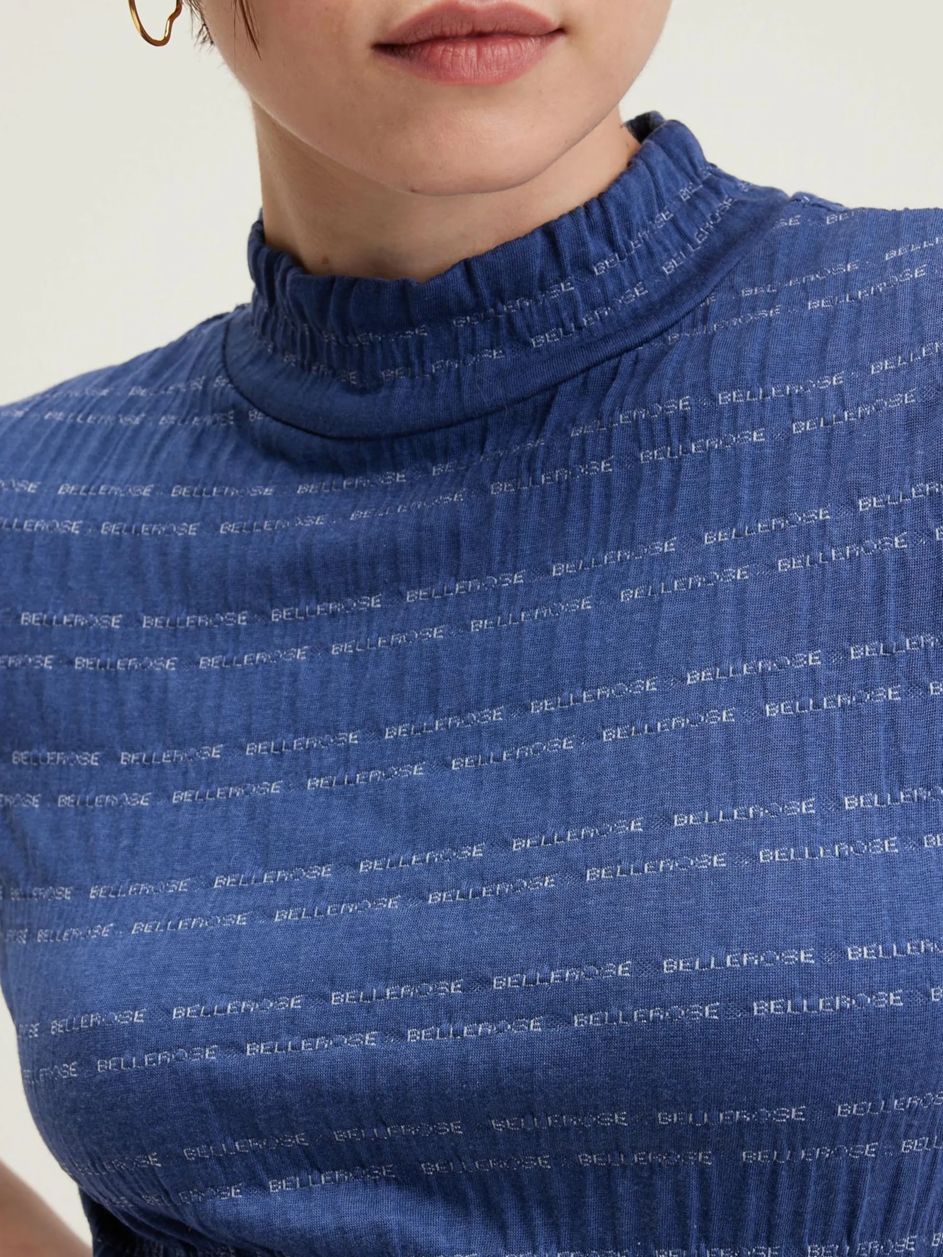 Blauw slim fit t-shirt met halflange mouwen, gestreept met Bellerose logo.