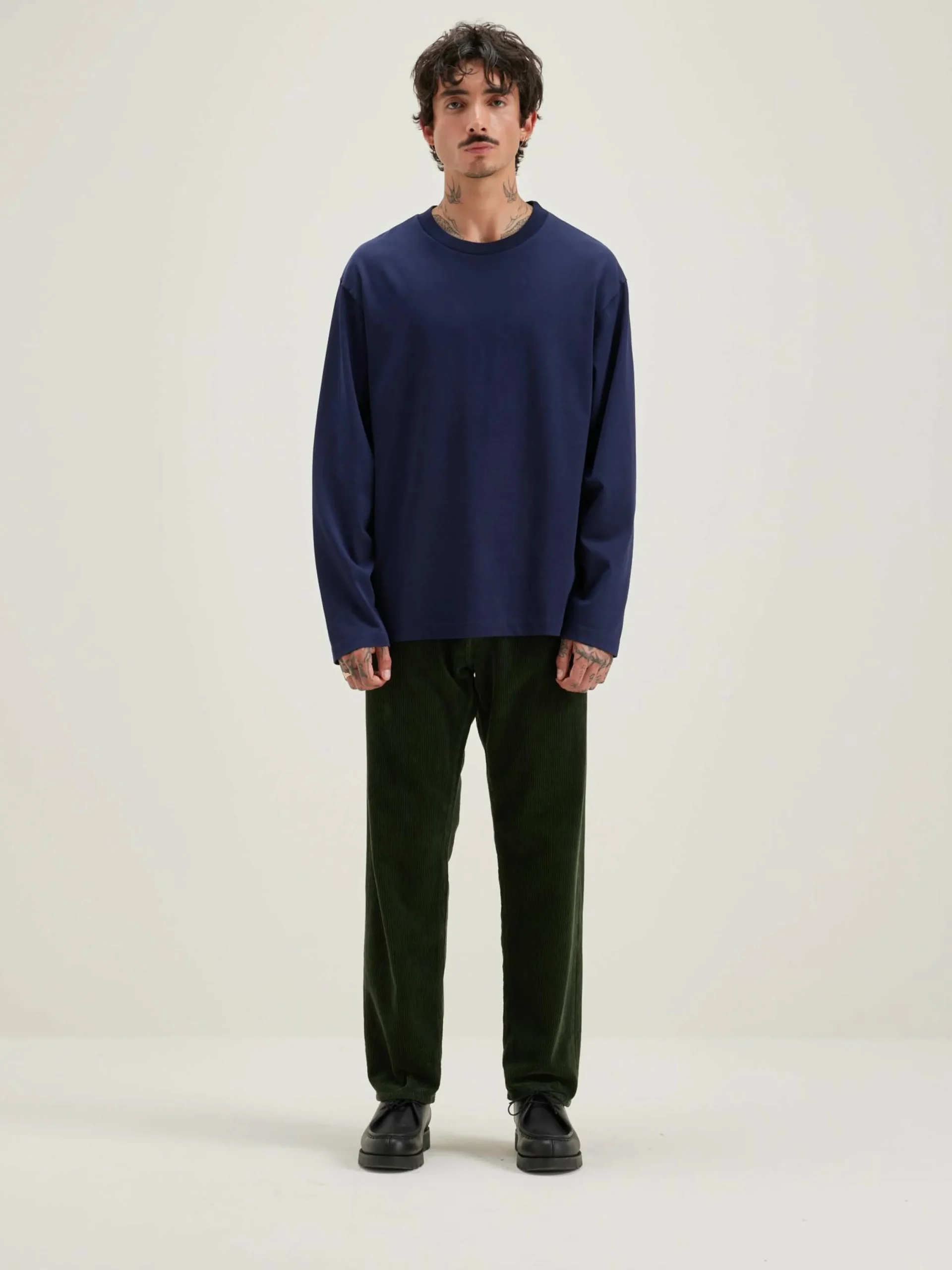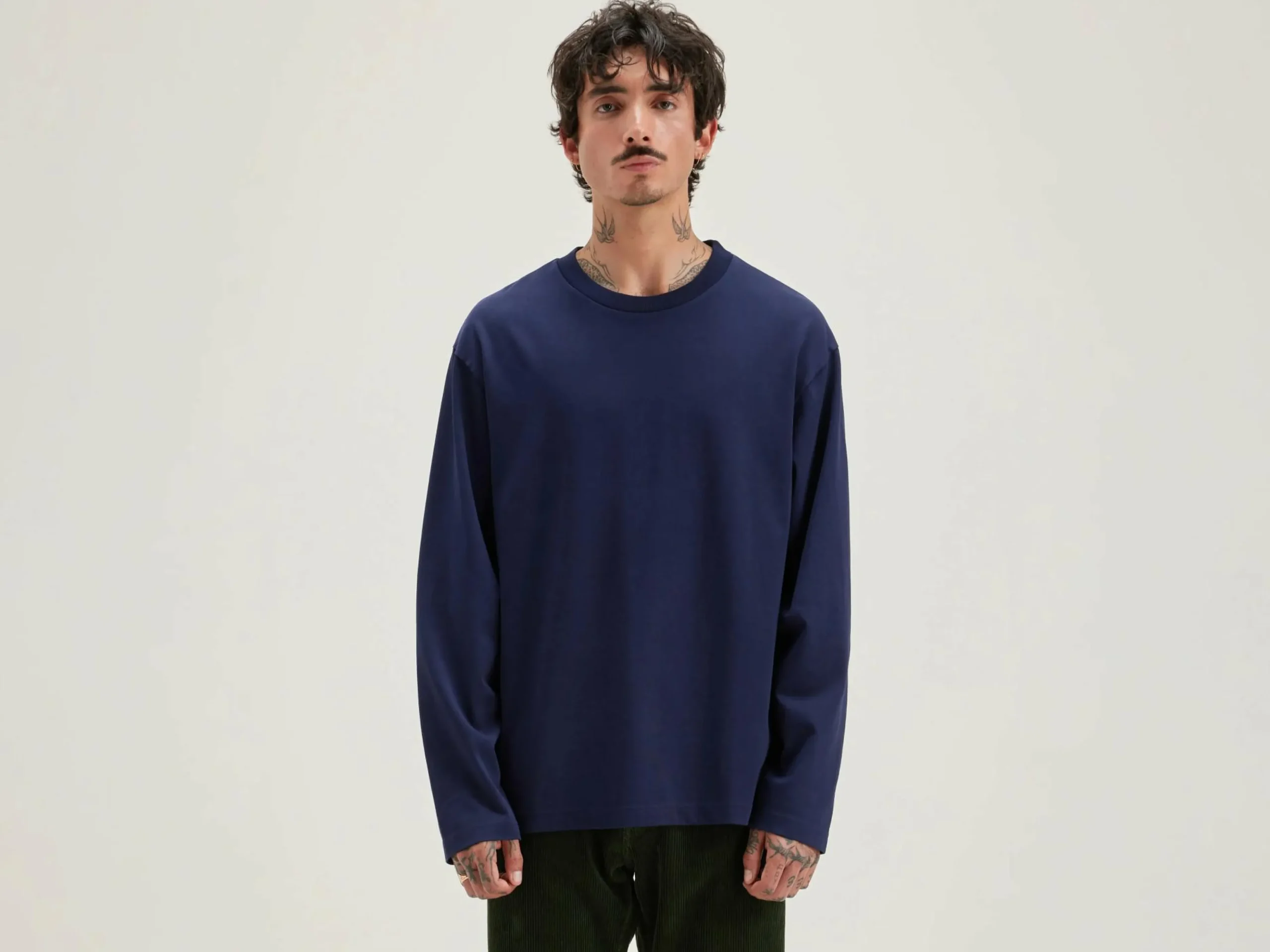 Relaxed fit, marineblauw T-shirt met lange mouwen van zware katoenjersey.