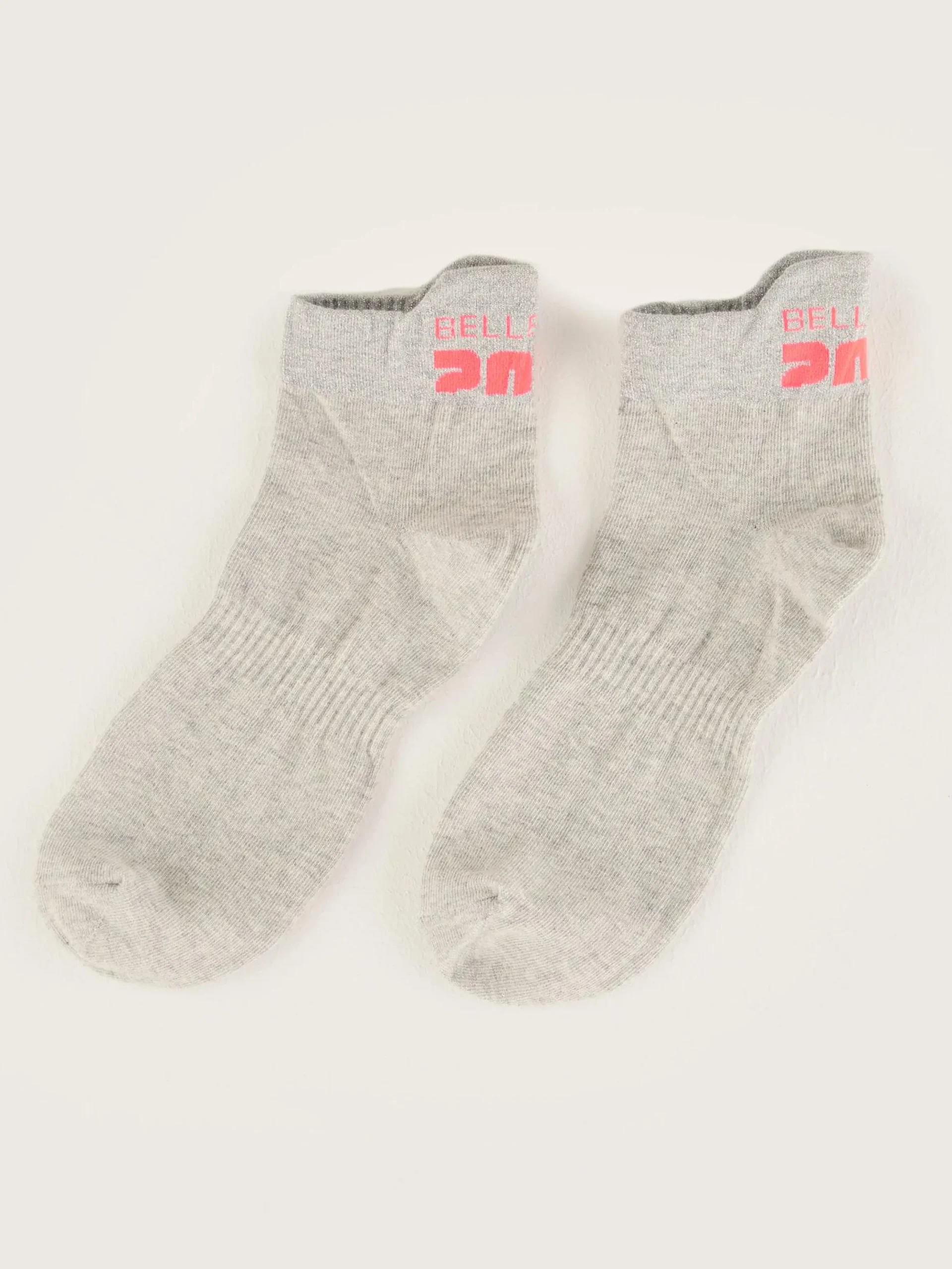 Sportieve grijze enkelsokken met het Bellerose 2024-logo op de hiel.