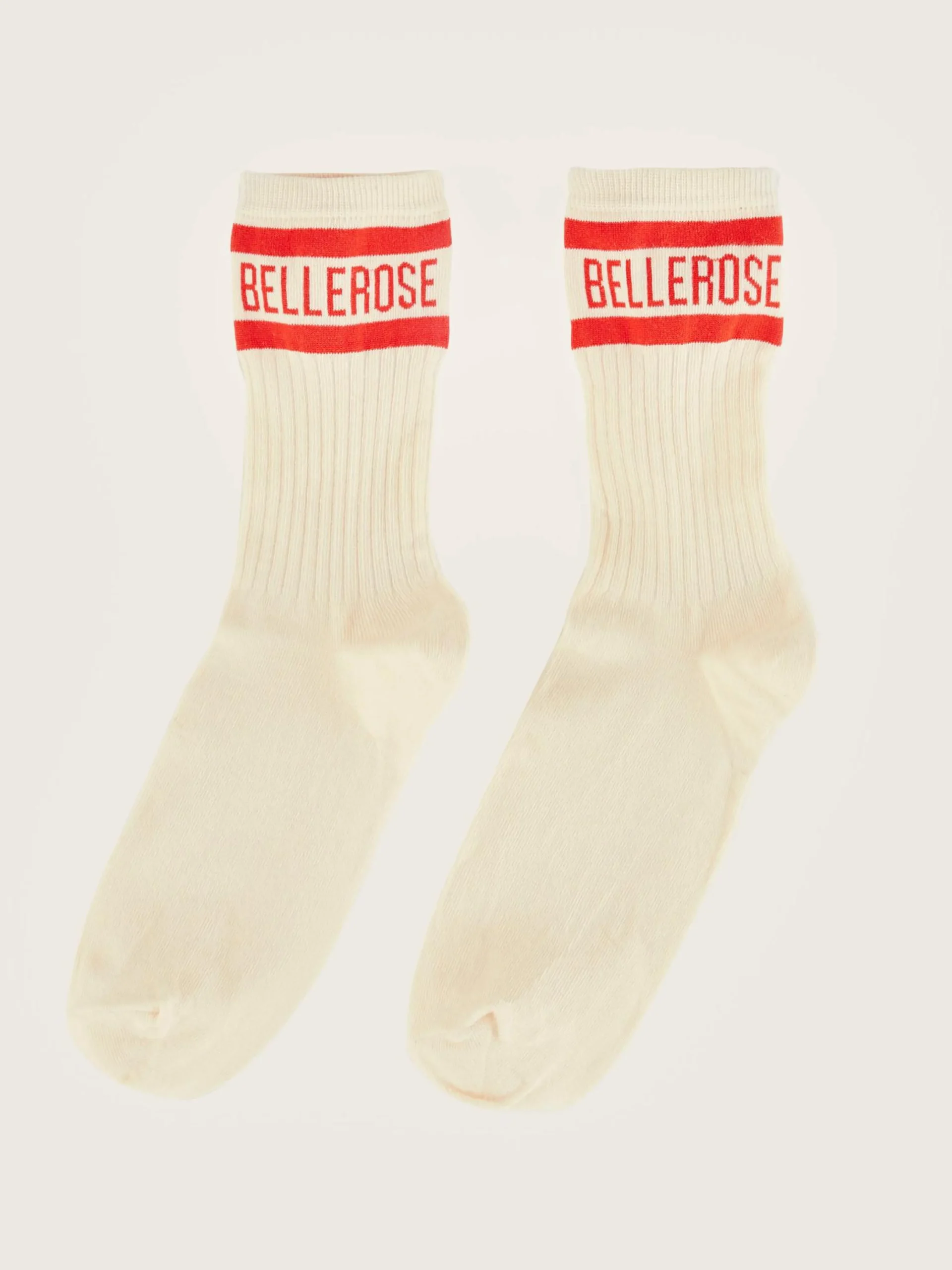 Klassieke sokken in ecru met Bellerose-logo in rood op de enkel.