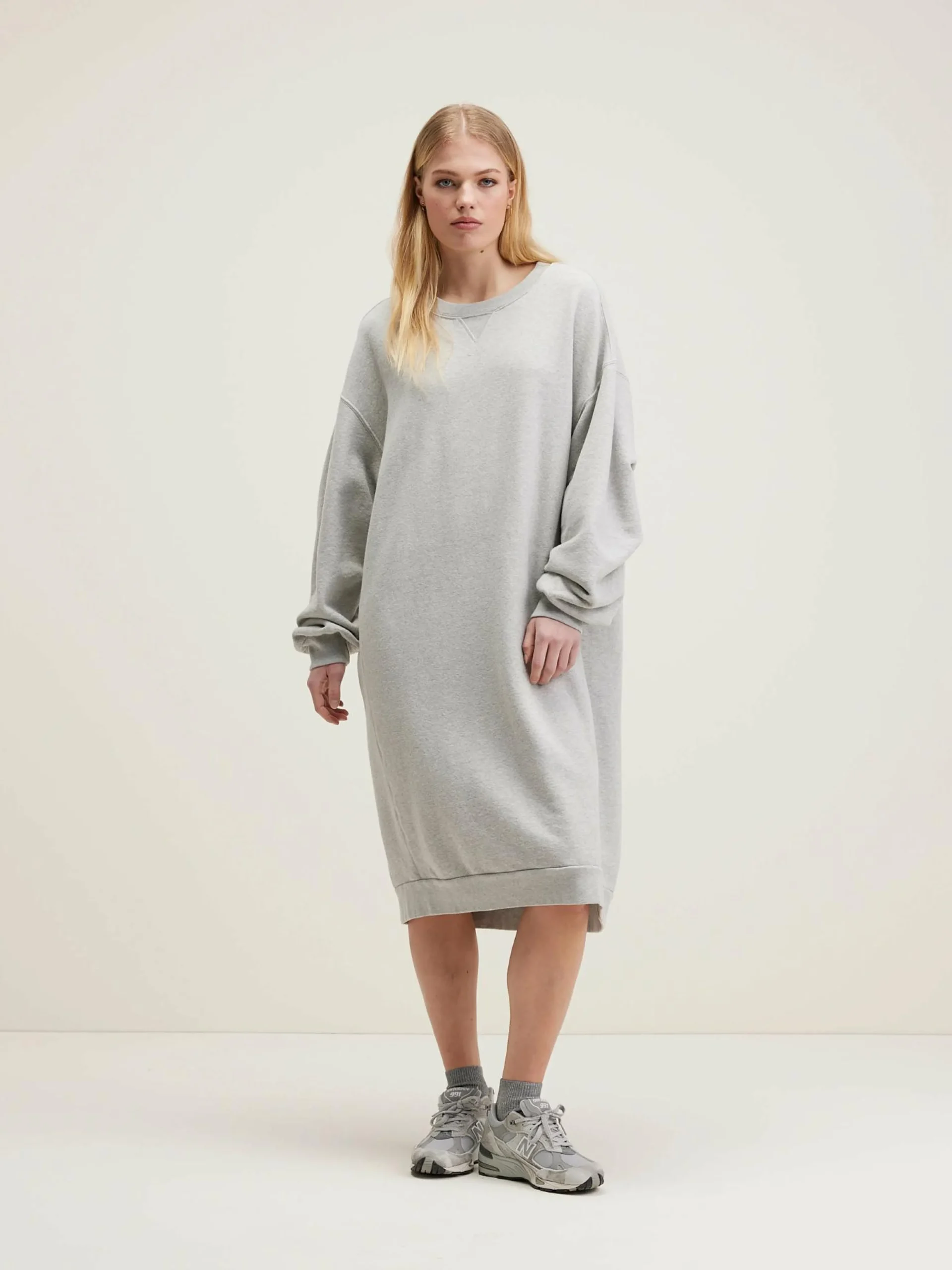 Lange, grijze sweatshirtjurk van katoenjersey.